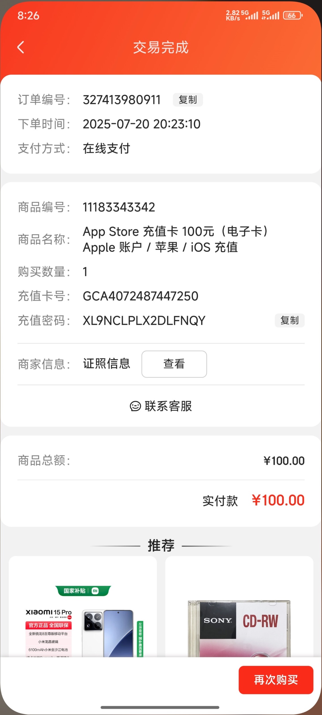 购买到充值只用了10秒钟,还说不是它司是核销的,已经被黑了三次了,这个通道也只能怪自己不长记性,我只是提个建议,大家嘴下留情