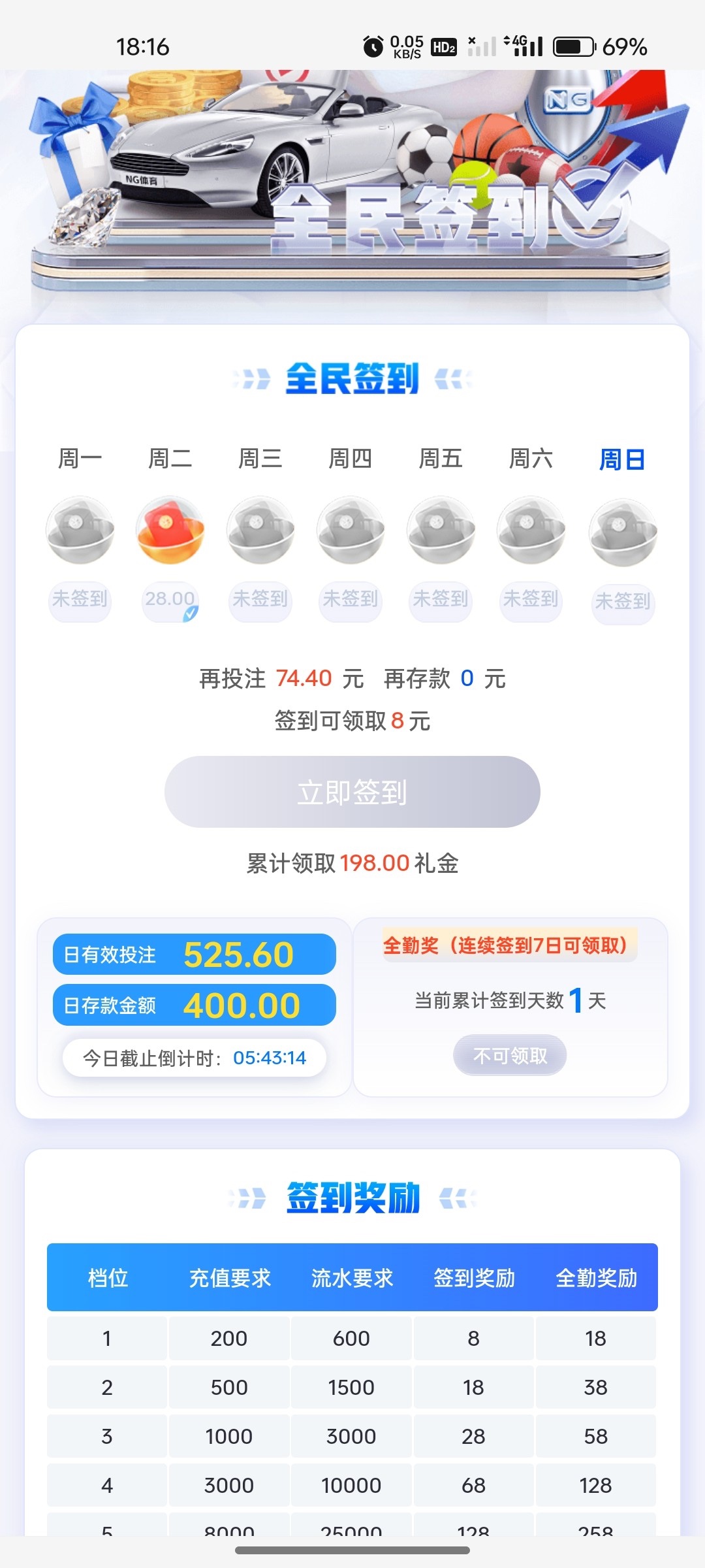 四百块钱1.5倍流水都打不到 还想着说薅个签到彩金就跑路