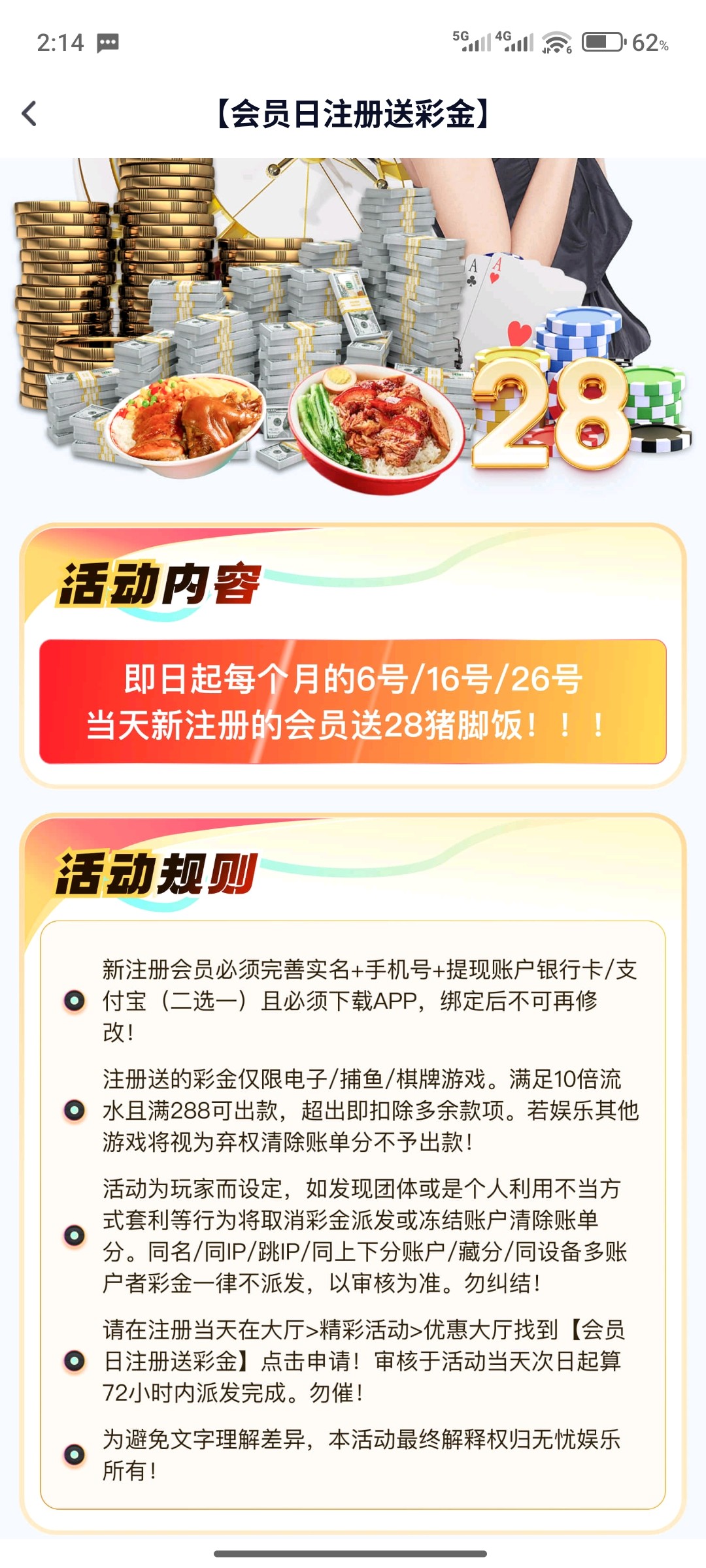 每个月6 16 26注册账号可以领取28彩金绑好卡优惠里面申请 人多了必黄,