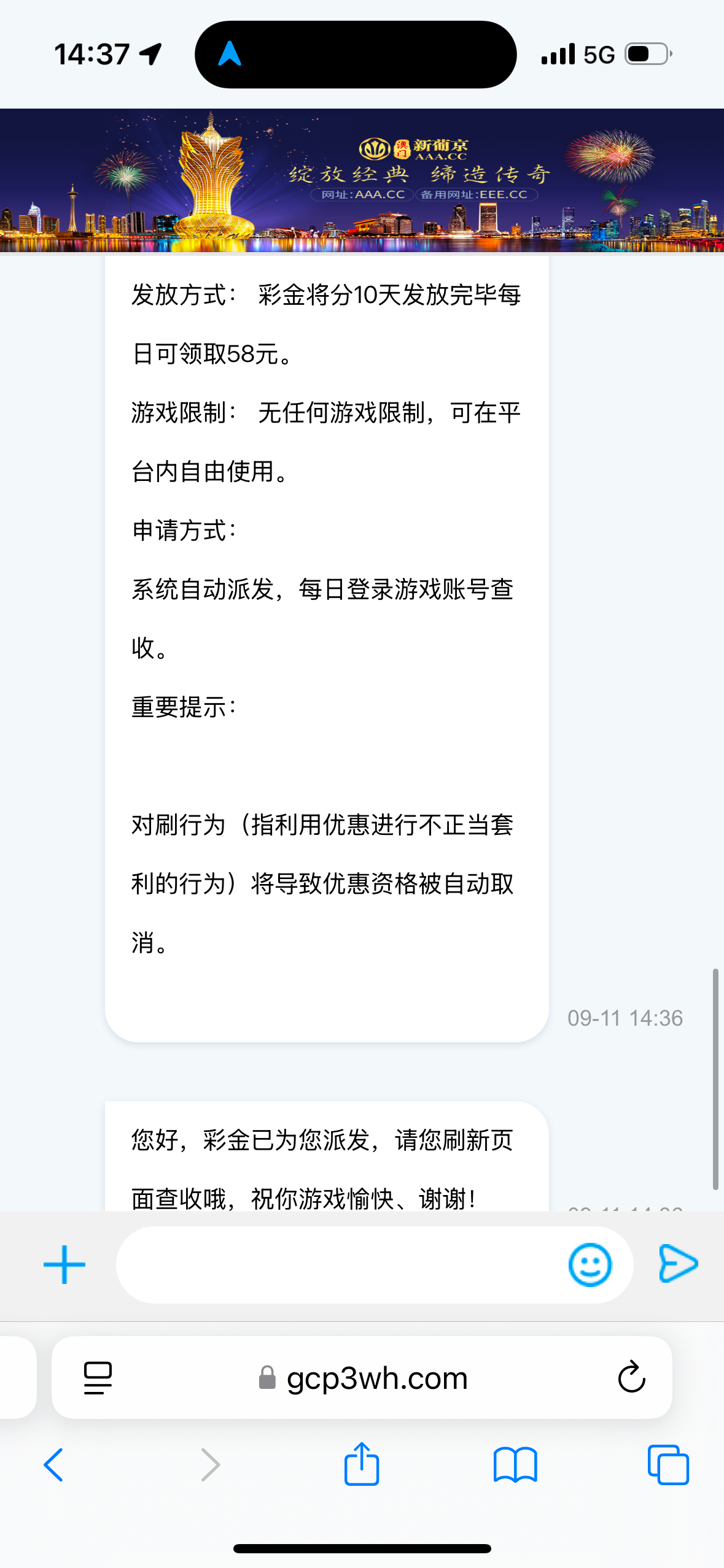 澳彩电话特邀580彩金 每天自动送58 漏接电话的老哥可以碰下 满588可下188