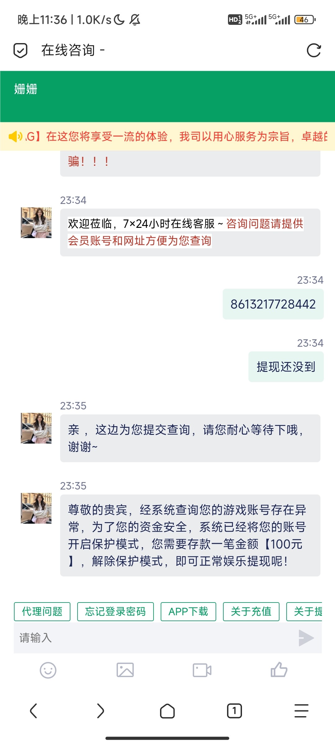 一样,也被黑了,充了200,不出款