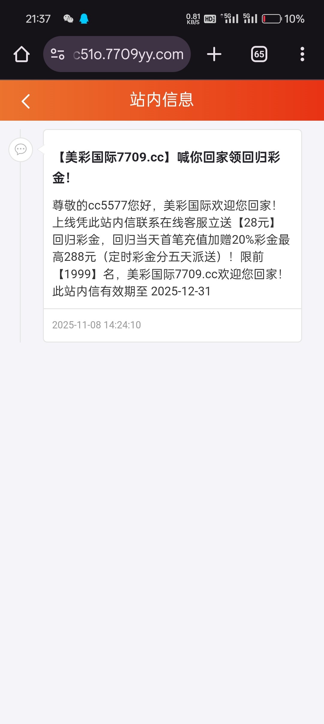 【美彩国际】站内信通知