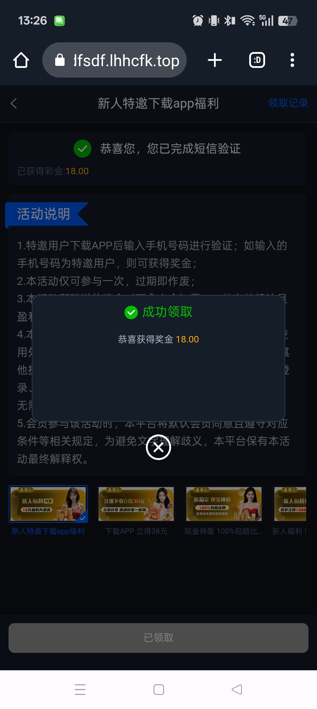 碰瓷短信彩金