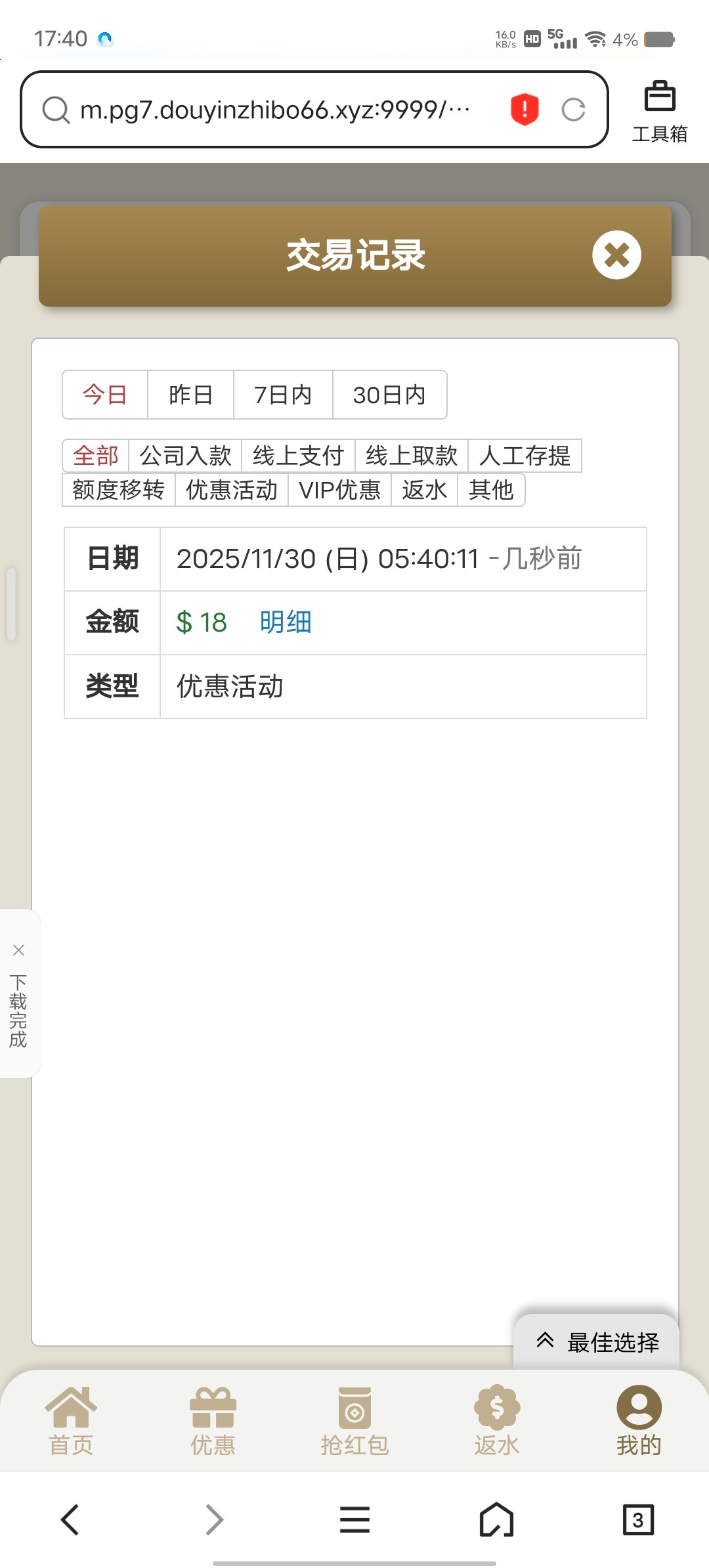 哈,领了5块钱,打PG到33,不知道能不能取,随机试了下,扣掉送的5块,确实到账了28,网站还是不黑