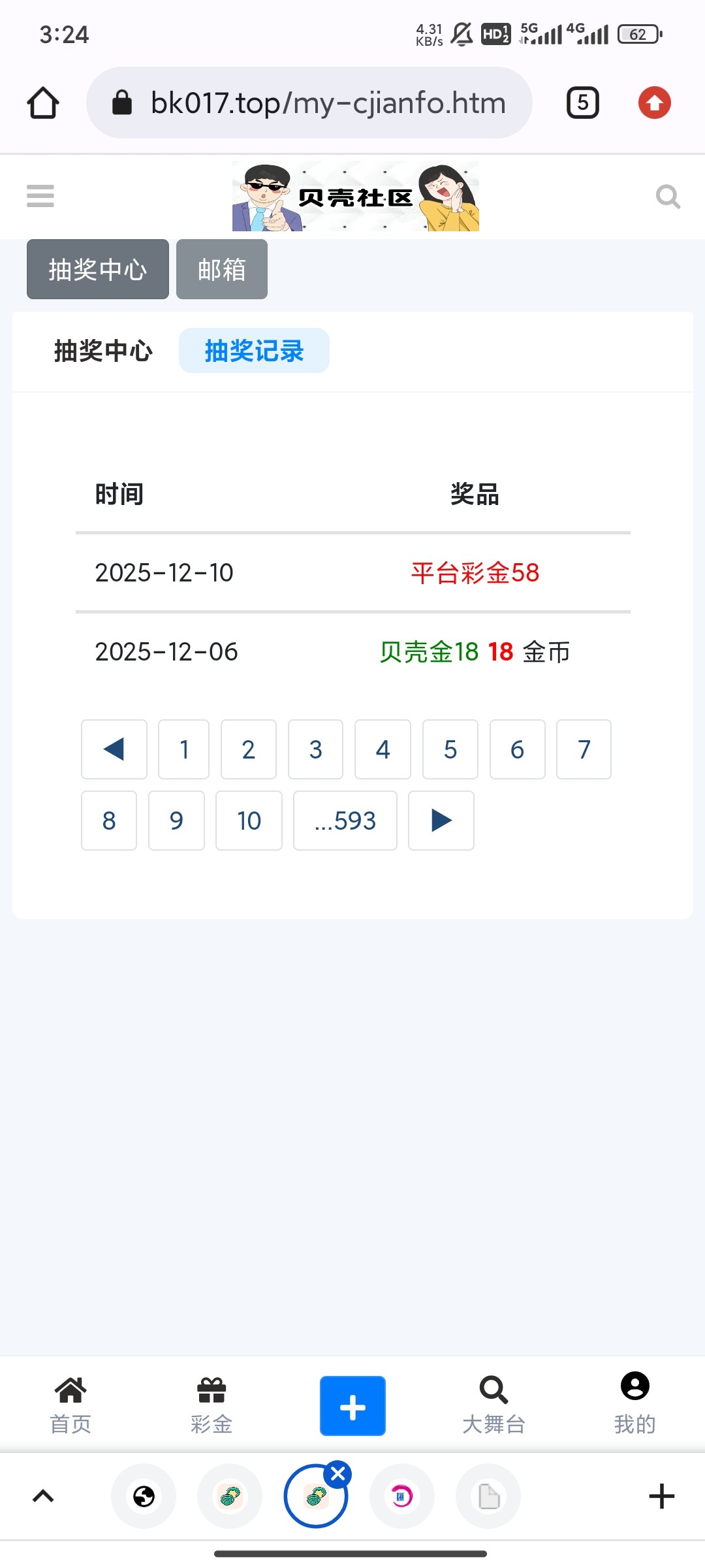 抽奖中了彩金58
