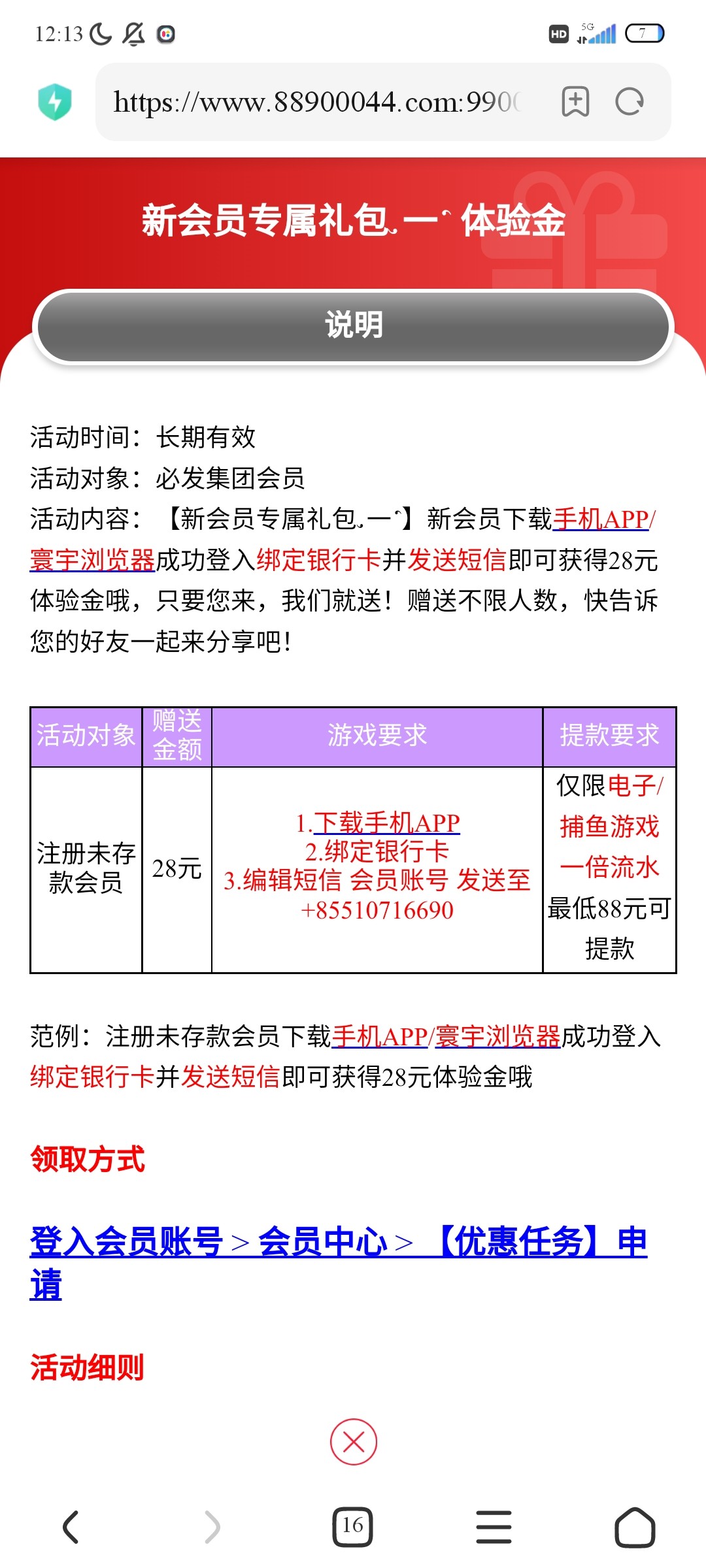 按活动发送短信,再到优惠中心申请新用户28元