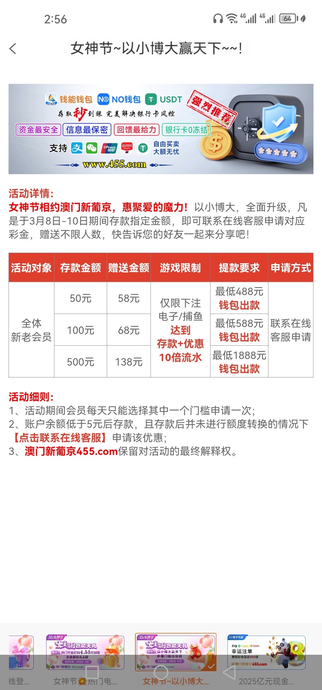 【葡京455女神节50+58小博大】
