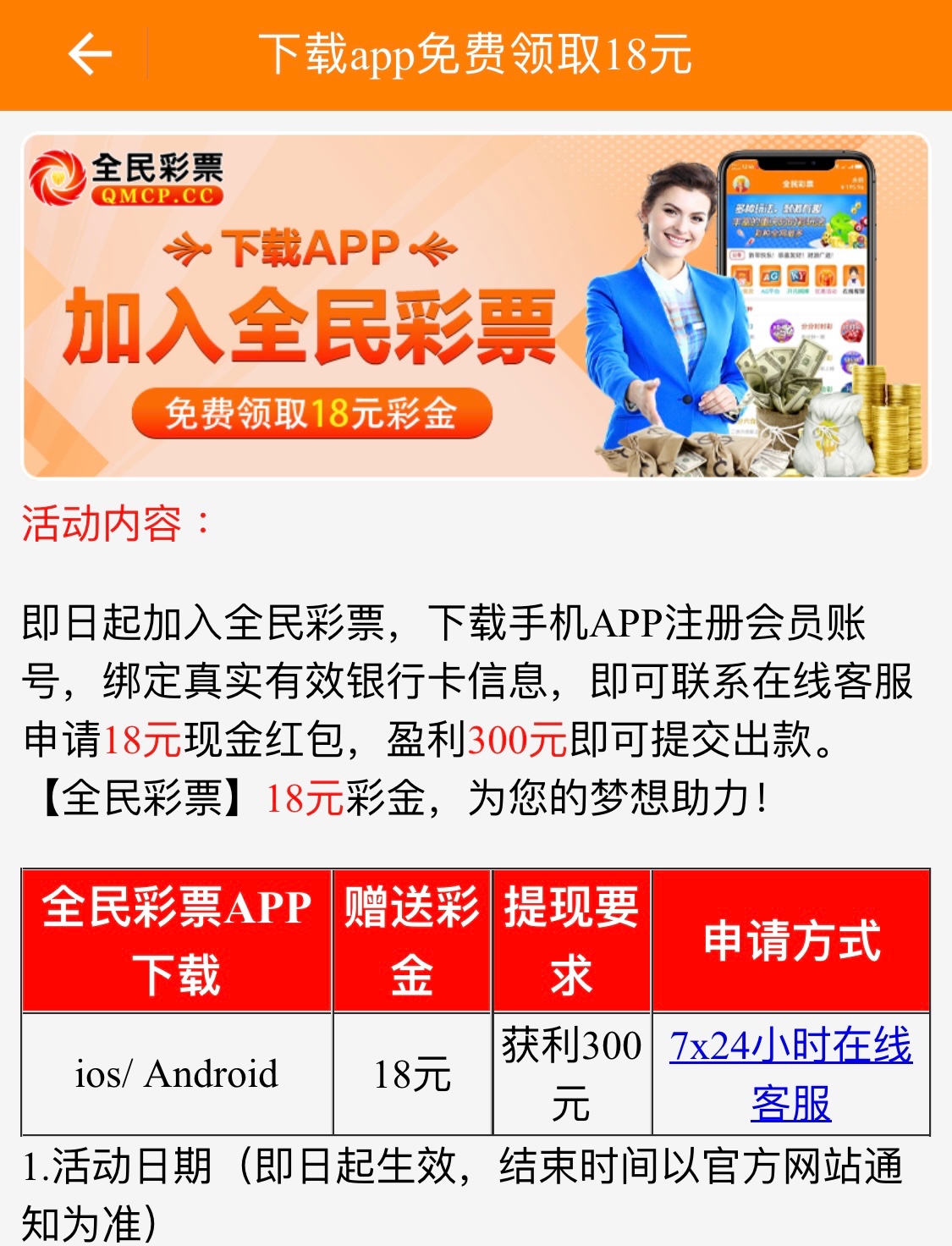 新用户首次注册下载APP绑定银行卡完善个人信息即可联系在线客服申请18彩金