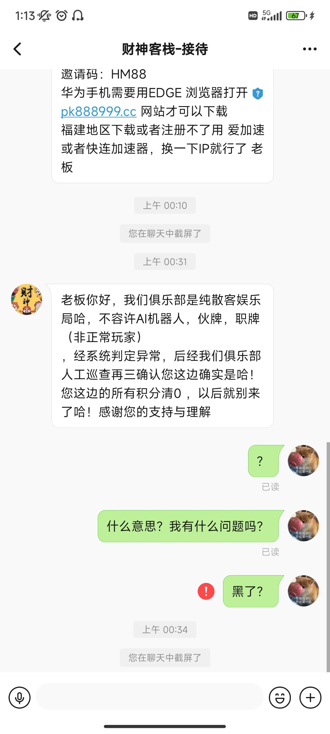 被wpk俱乐部财神客栈7280000(之前叫豪门俱乐部)黑了4200,起因是有个狗推加我微信说冲200送100,一顿操作打到4200去提现,结果直接黑掉。我贪它的100彩金,它贪的是我200本金,喜欢打德州扑克的老哥们避雷。狗庄玩不起了直接搞起了诈骗。还好只是损失200本金